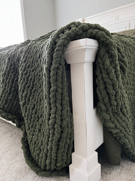 Chunky Knit Chenille Throw Blanket - Green