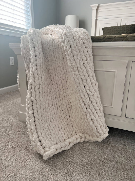Chunky Knit Chenille Throw Blanket - Cream