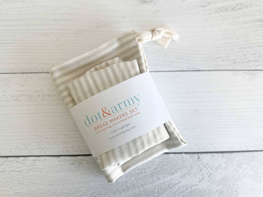 Bread Makers Set in Ticking Stripes, bread bag & bowl cover