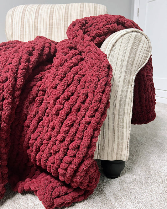 Chunky Knit Chenille Throw Blanket - Cranberry