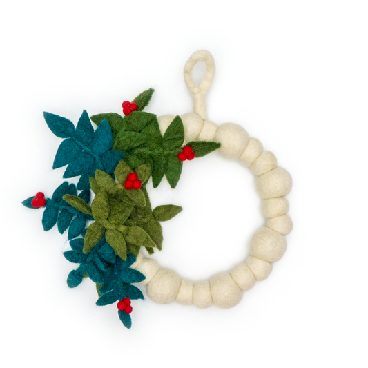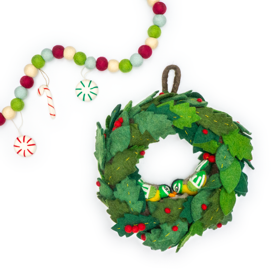 Festive Birds Holiday Mistletoe Felt Wool Wreath