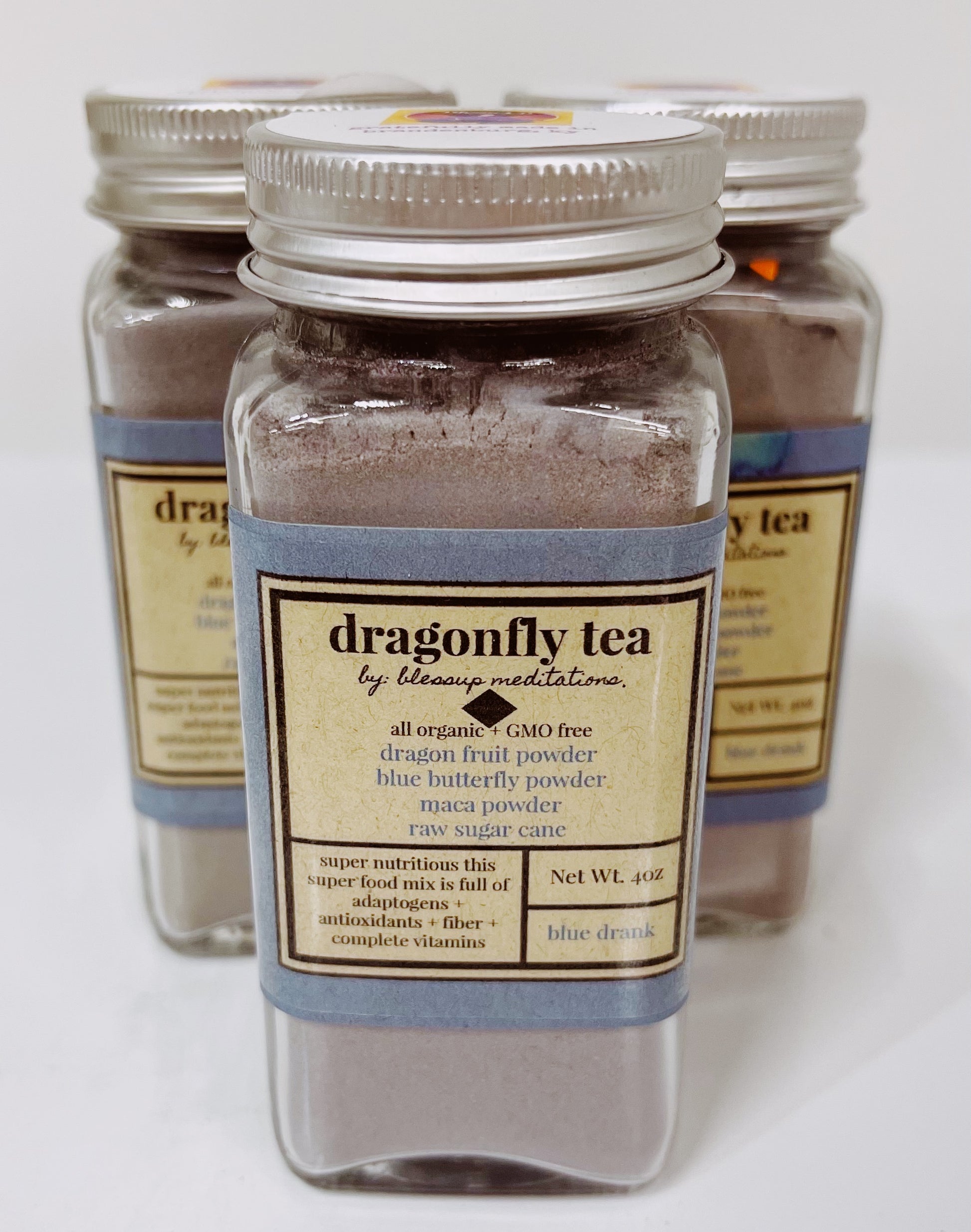 Dragonfly Tea (Butterfly flower powder, dragonfruit, maca, and raw sugar cane; Full of adaptogens, antioxidants, fiber and complete vitamins).
