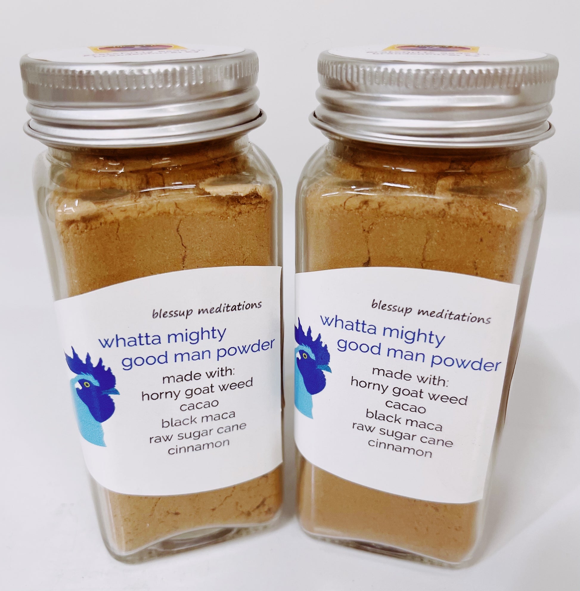 Whatta Mighty Good Man (horny goat weed, black maca, cinnamon and cocoa; Great for mood boosting, helps circulation, feeds cells and YUMMY!).