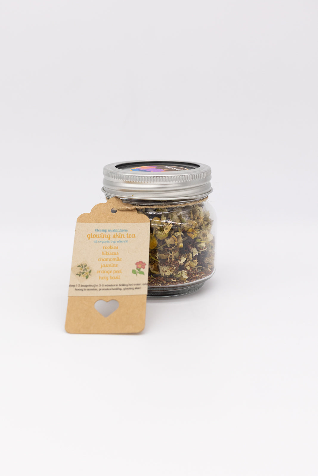 Ingredients: Rooibos, hibiscus, chamomile, jasmine, orange peel, and holy basil