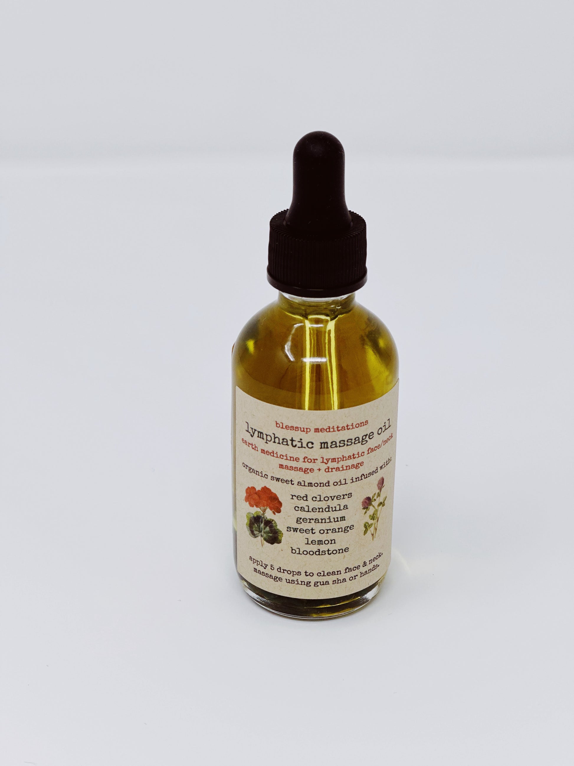 Organic sweet almond oil infused with red clovers , calendula, geranium, sweet orange, lemon and bloodstone.
