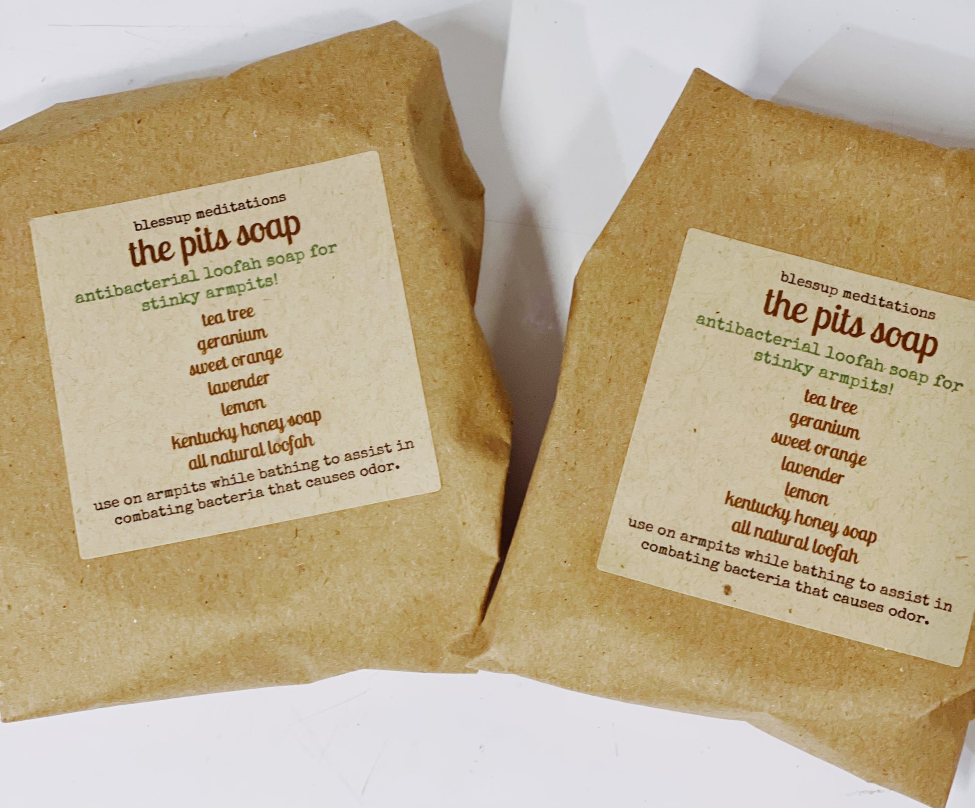Combat odor-causing bacteria with this blend of tea tree, geranium, sweet orange, lavender, kentucky honey soap and all natural loofah!