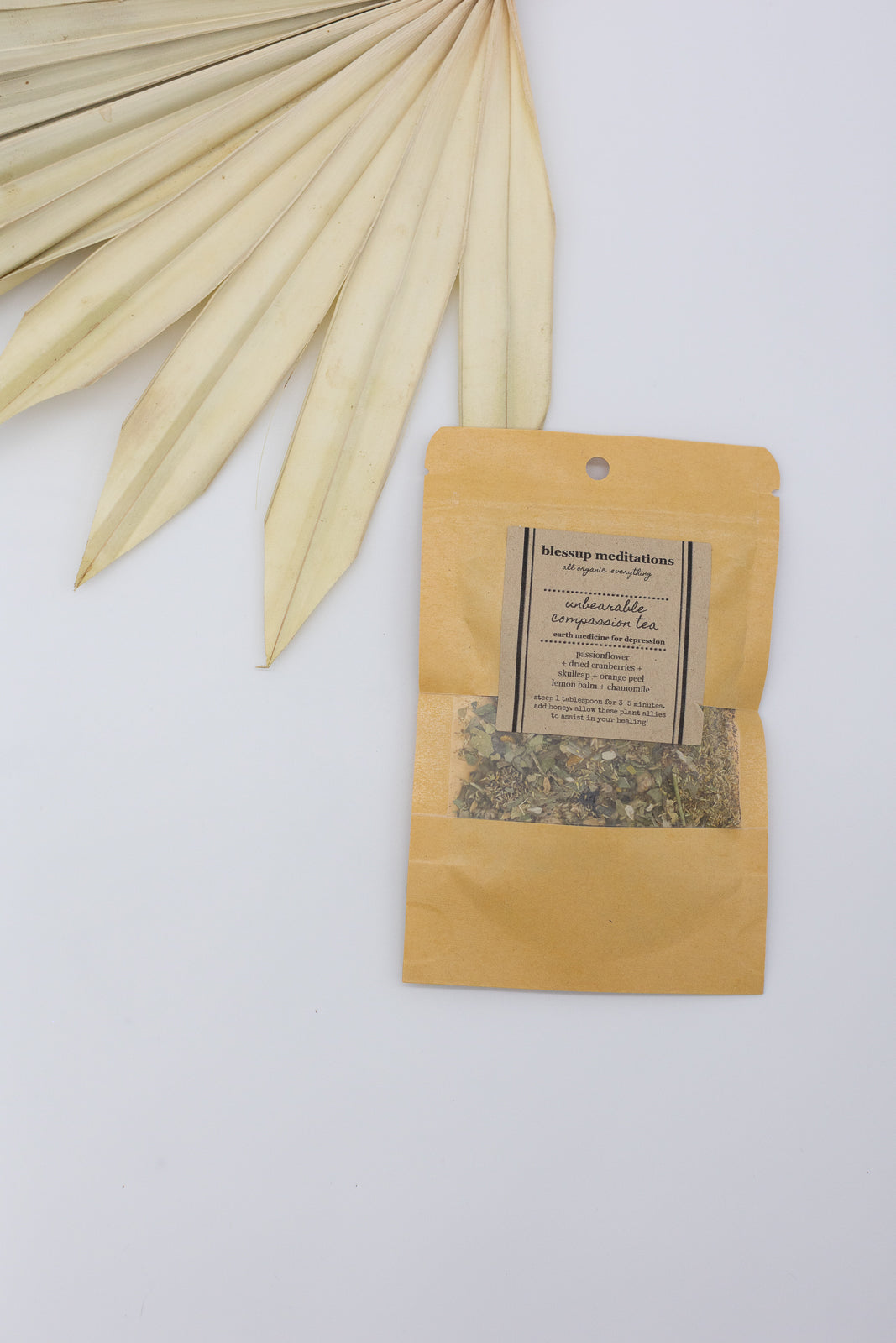 A blend of powerful plant allies to aid in your personal healing journey. Carefully selected flowers and herbs of Passioinflower, Dried Cranberries, Skullcap, Orange peel, Lemon Balm, and Chamomile.