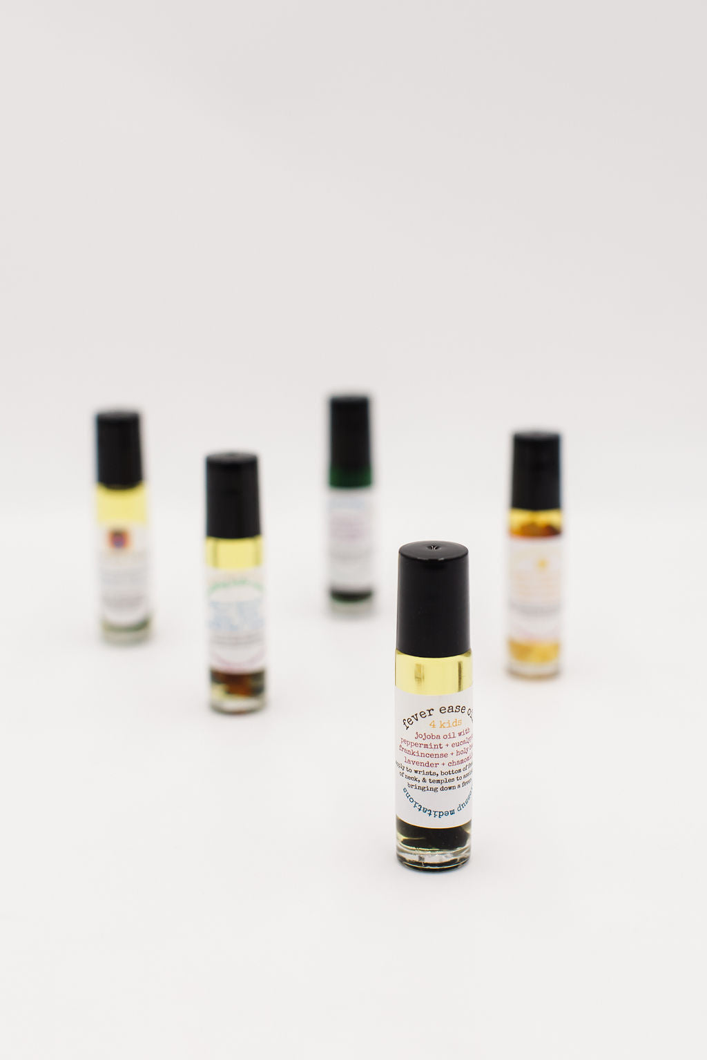 Fever Ease 4 Kids - jojoba oil infused with peppermint, eucalyptus, frankincense, holly basil, lavender and chamomile.