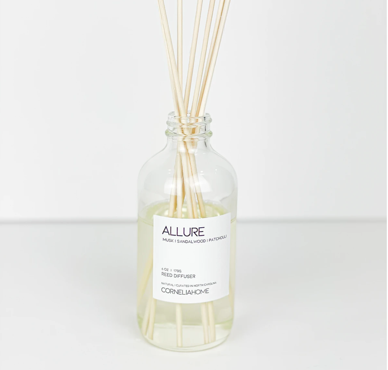 Our reed diffusers are a blend of 100% natural diffuser base and unique fragrance oils in 4oz clear glass apothecary-inspired bottles. Each diffuser contains 5 natural reed rattans lasting approximately 6-8 months. Amber bottles are 5.5" tall and reeds are 10" long. Our products are free of phthalates, parabens, petroleum and dyes.