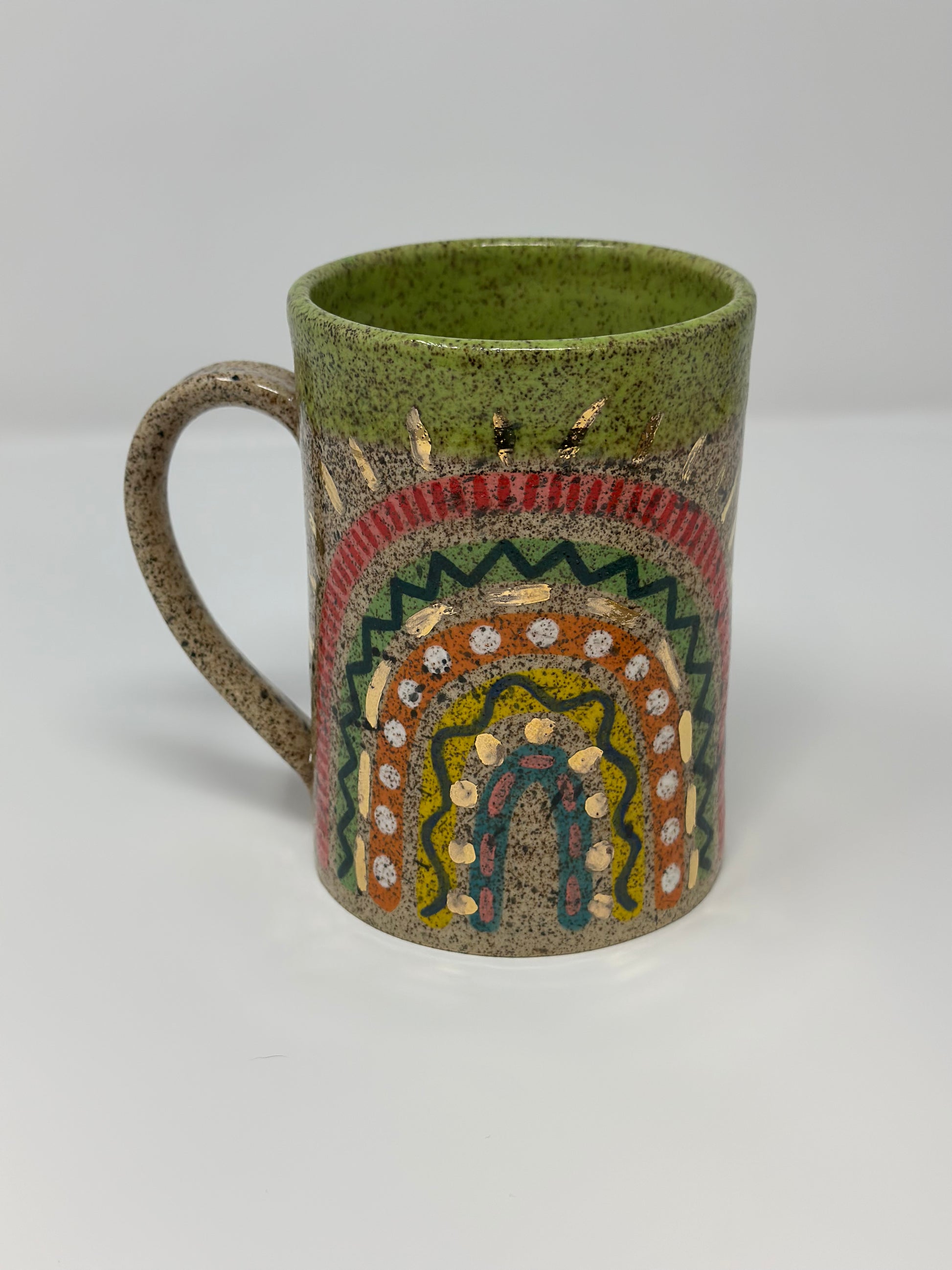 Handmade ceramic mug brings a smile with every sip! Gold leaf accents add just enough sparkle and warmth and will brighten anyone's day!
