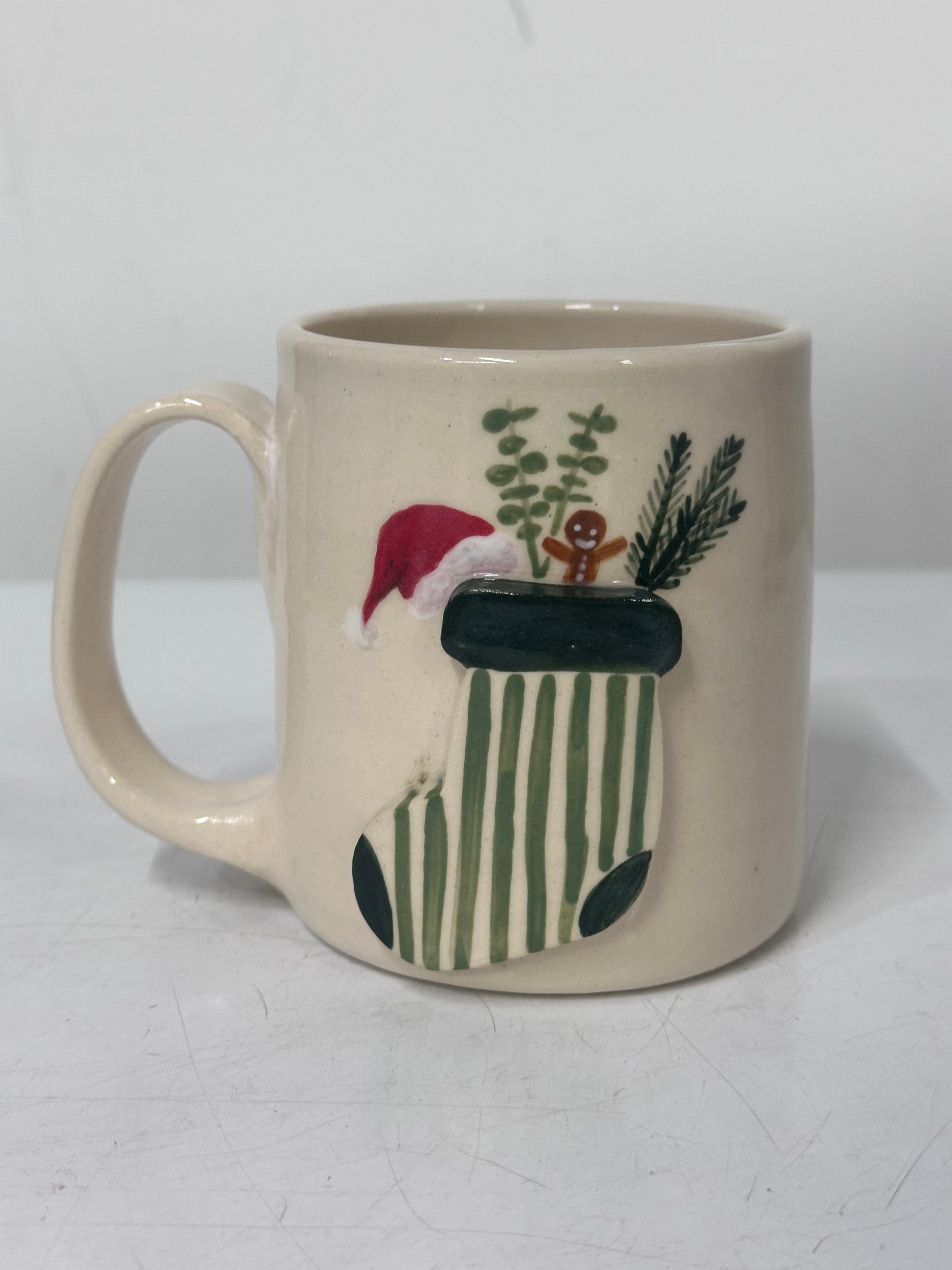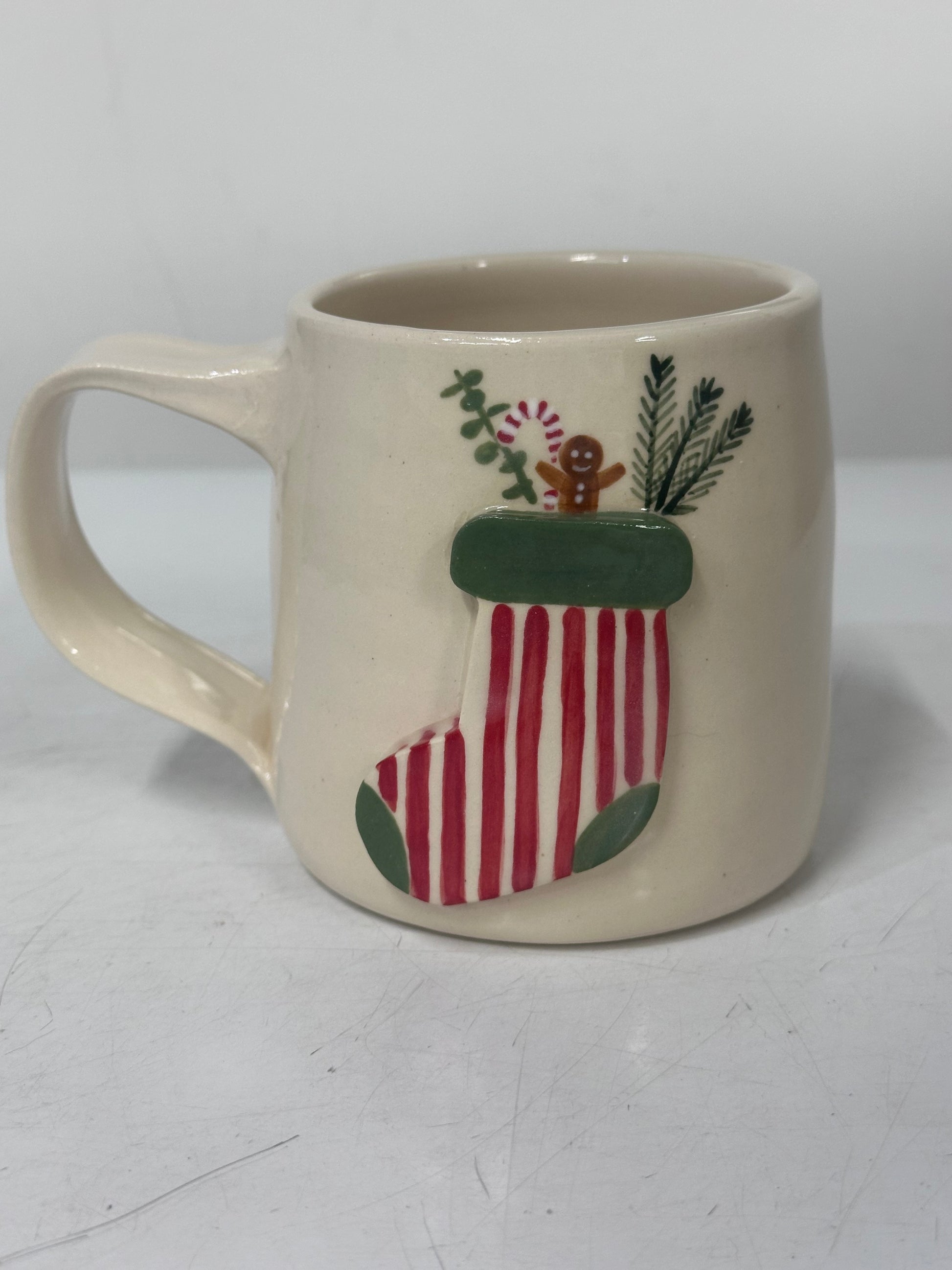 Handmade and painted ceramic stocking mug made right here in Loudoun County, VA.