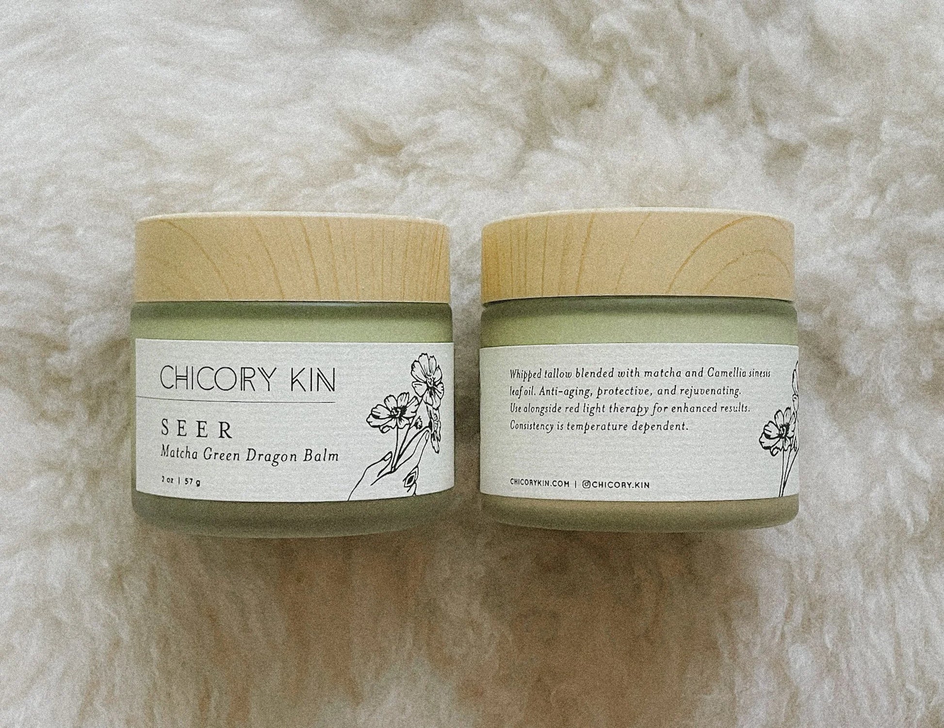 A whipped tallow balm blended with ceremonial grade matcha and Camellia sinesis leaf (Green Tea) oil. Green tea is known for its synergy with red light therapy for enhanced skin rejuvenation, vitality, and antioxidant protection. It also offers anti-bacterial and anti-aging properties. Green tea contains powerful antioxidants called polyphenols which can help protect skin from UV damage and promote healing.