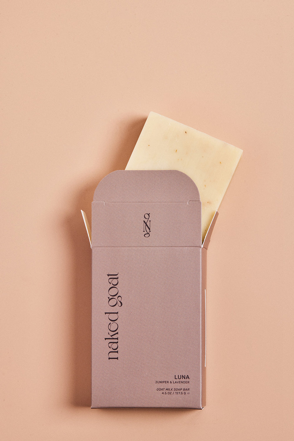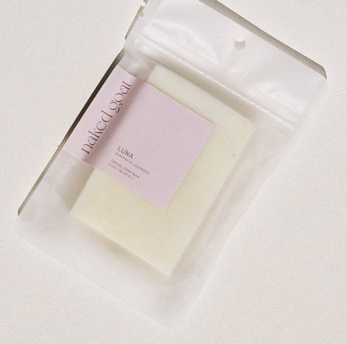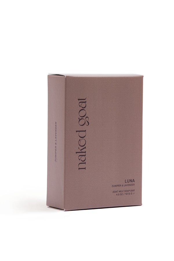 Saponified Oils of: Olive, Coconut, Shea Butter, Castor, Cocoa Butter, Goat Milk, Juniper Berry Essential Oil, Lavender Essential Oil, Ground Lavender Buds, and White Clay