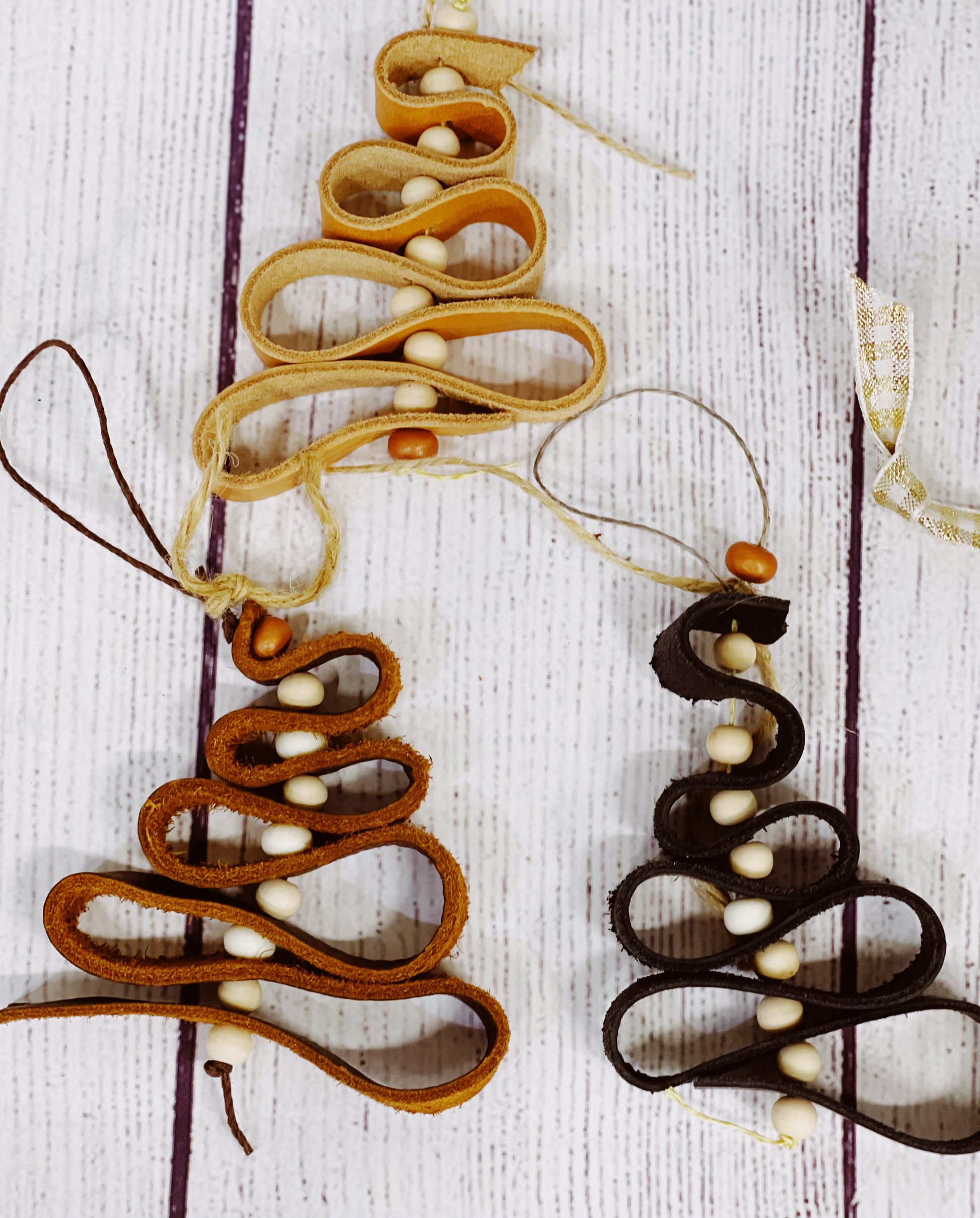 Choose between multiple and adorable styles of these handmade, leather ornaments.