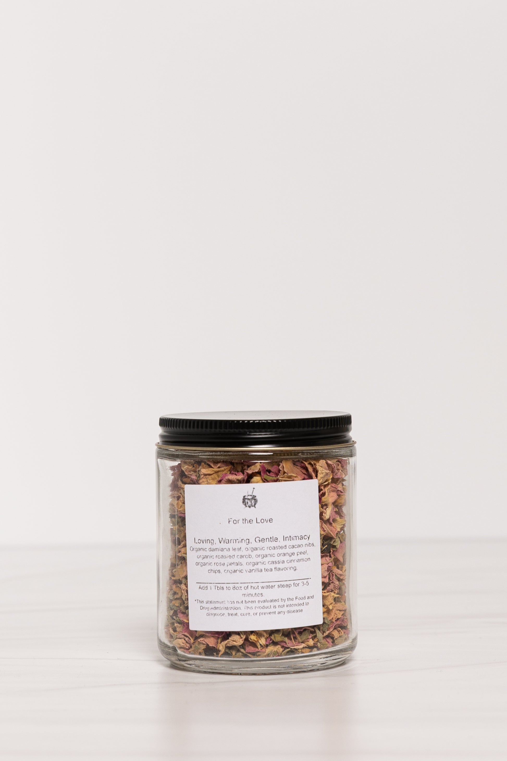 Ingredients: Organic Damiana leaf, organic roasted cacao nibs, organic roasted carob, organic orange peel, organic rose petals, organic cassia cinnamon chips, organic vanilla tea flavoring.