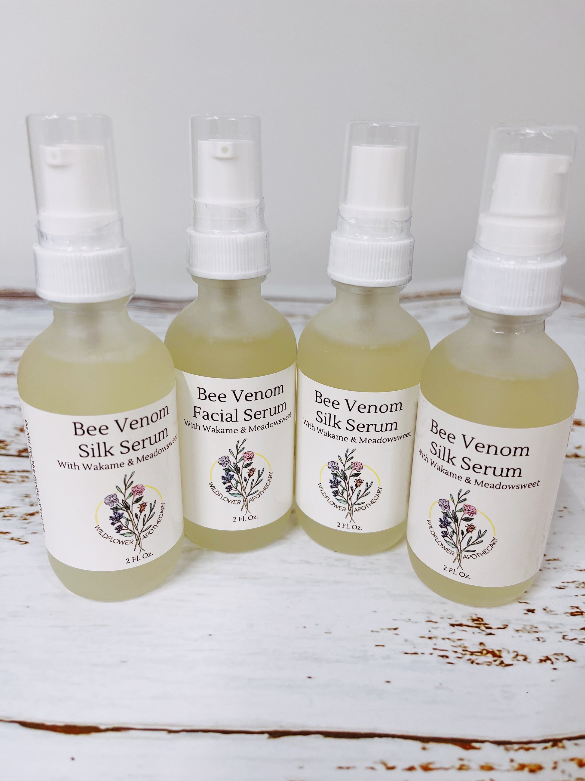 Make your skin look & feel like Silk with this powerful skin smoothing, anti-aging serum. This gorgeous product offers broad spectrum benefits with a beautiful blend of organic ingredients to treat your skin naturally. Experience the magical treatment of Ethically sourced Bee Venom with an easy application for beautiful results in 10-15 minutes! The bee venom tricks the skin into thinking it’s been stung, and generates a mild inflammatory effect that plumps the skin enough to diminish fine lines, wrinkles & pores! Amazing. Bee Venom is also a great treatment to treat acne.